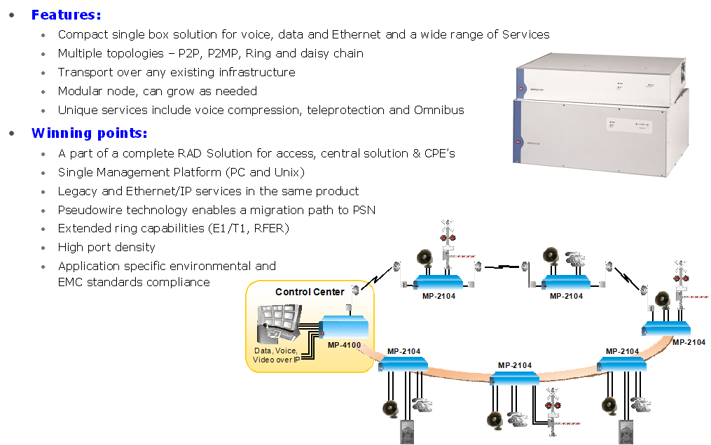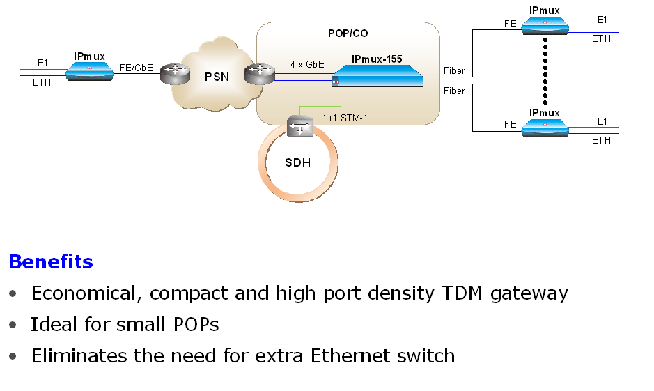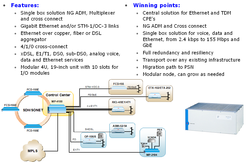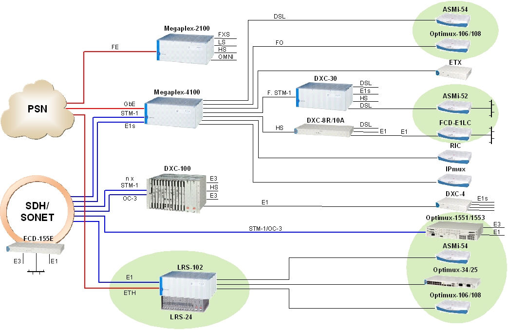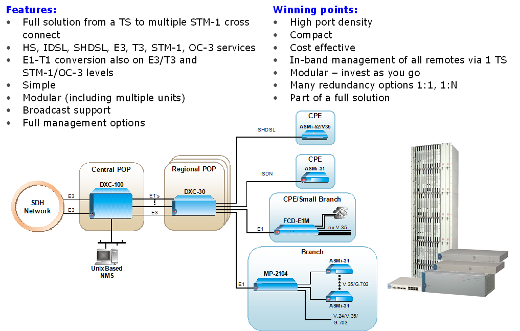 Η λύσεις της συνδυάζουν SDH (μέχρι STM-1) και PDH ιεραρχία συνιστώντας ιδανική πρόταση για διασύνδεση legacy δικτύων (SDH, PDH, ΑΤΜ) με σύγχρονες υλοποιήσεις αναβάθμισης (Packet Switch).