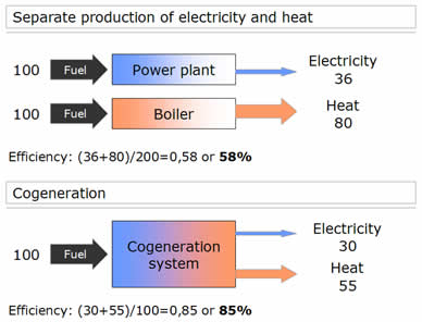 Η Συμπαραγωγή προσφέρει εξοικονόμηση ενέργειας που κυμαίνεται μεταξύ 15% έως 40% σε σύγκριση με την ξεχωριστή παραγωγή ηλεκτρικής και θερμικής ενέργειας από συμβατικά συστήματα (ηλεκτροπαραγωγικοί σταθμοί και λέβητες νερού/ατμού).